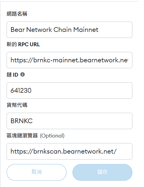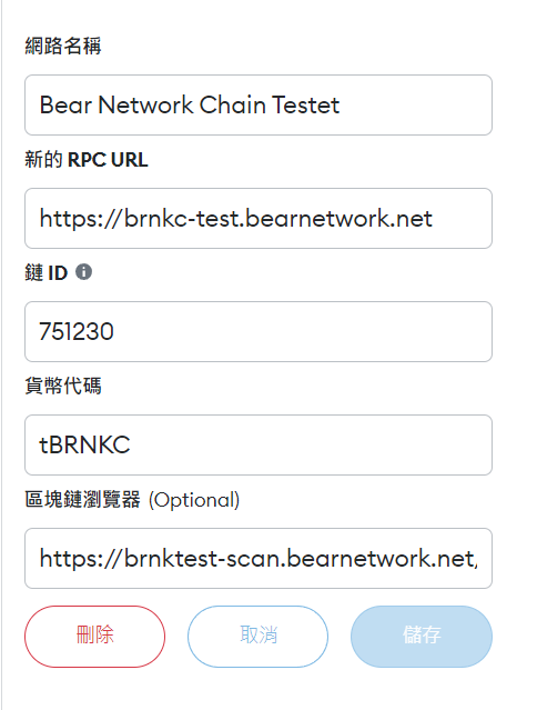 **New RPC URL ﹕**[**https://brnkc-test.bearnetwork.net**](https://brnkc-test.bearnetwork.net)