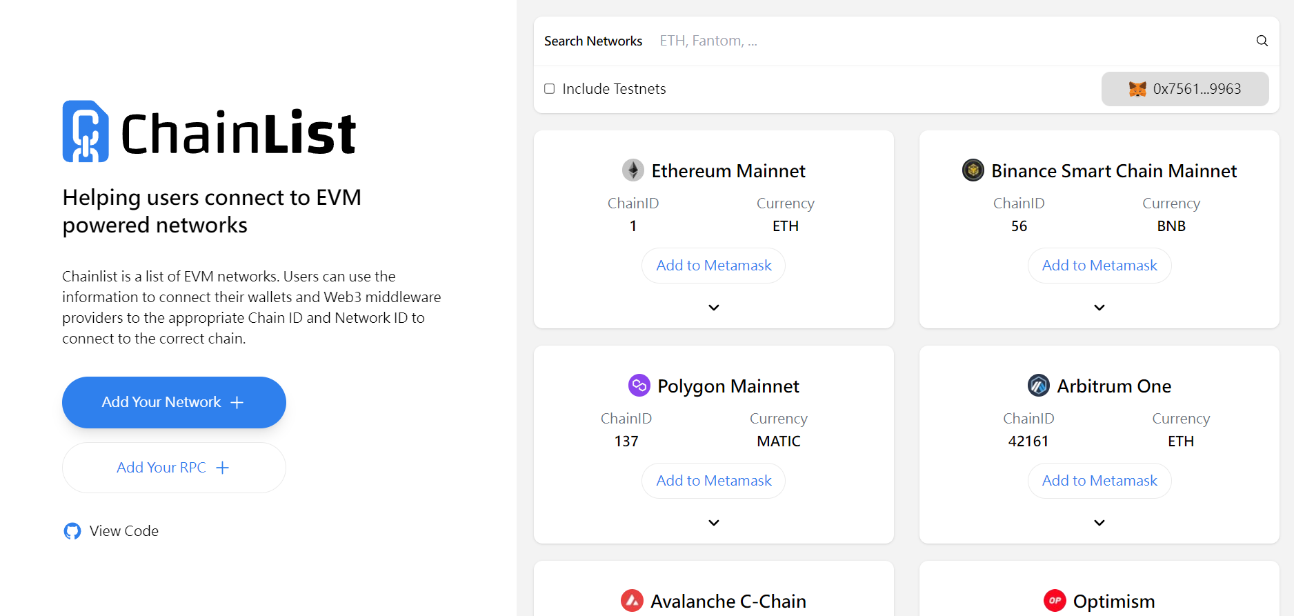 ### Chainlist: [https://chainlist.org](https://chainlist.org/)