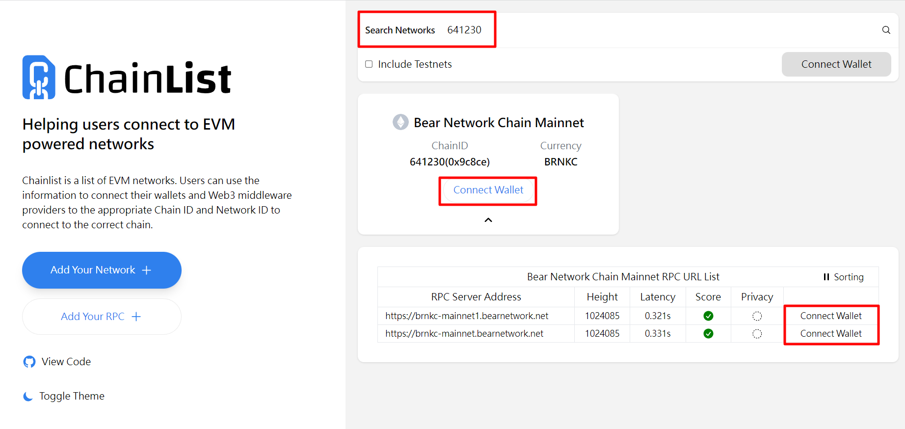 #### The Bear Network Chain has been registered on Chainlist, making it the quickest and most convenient way to join.